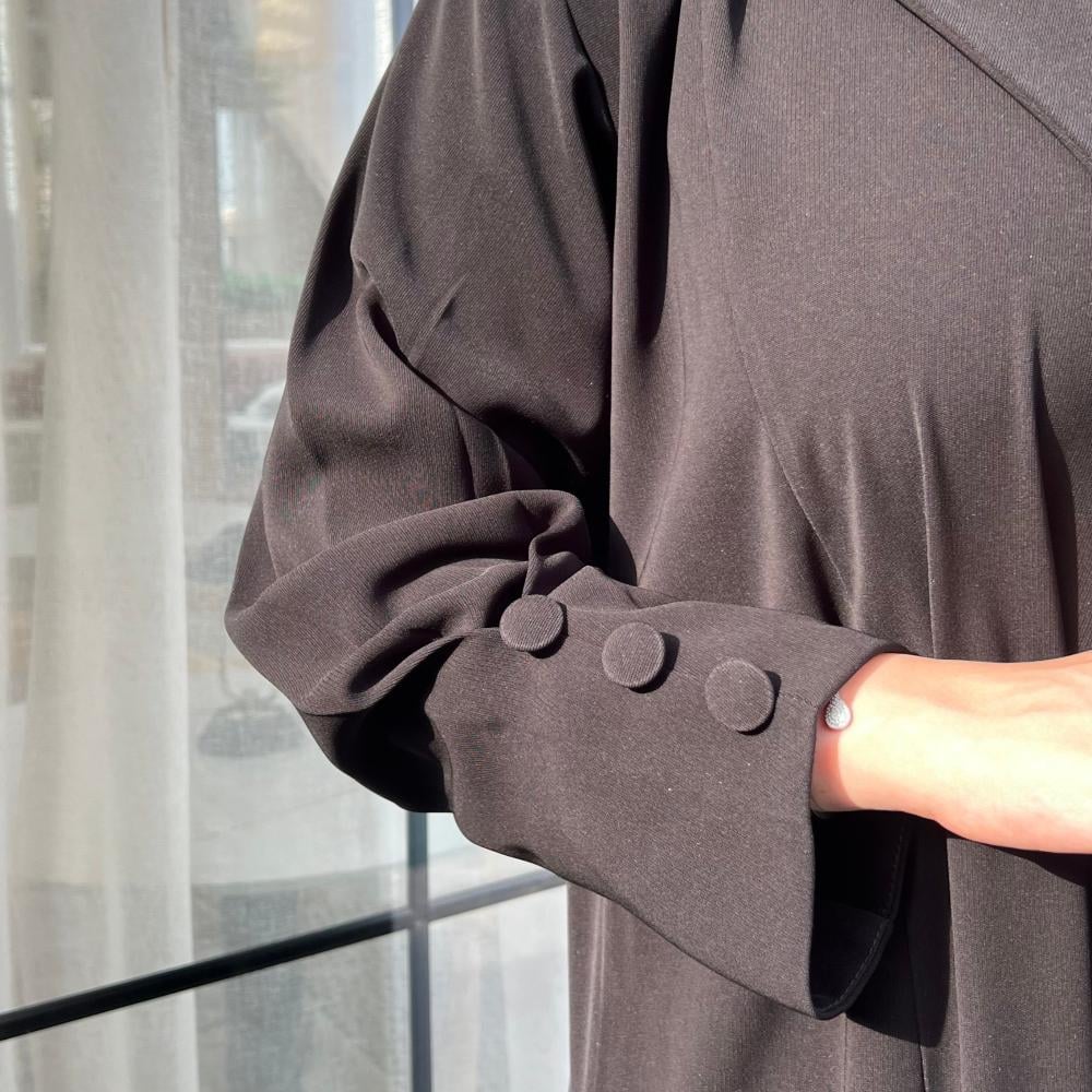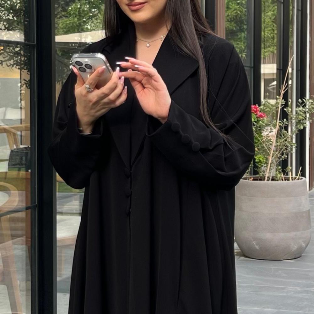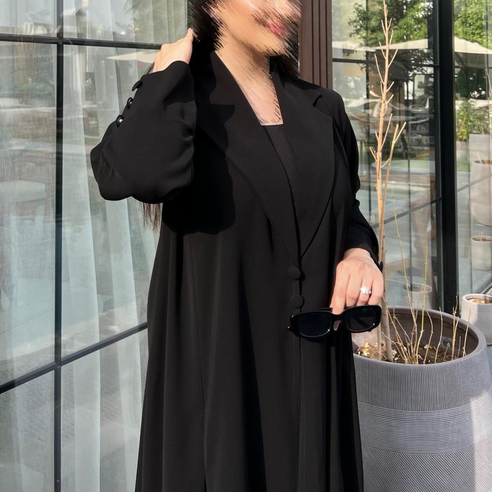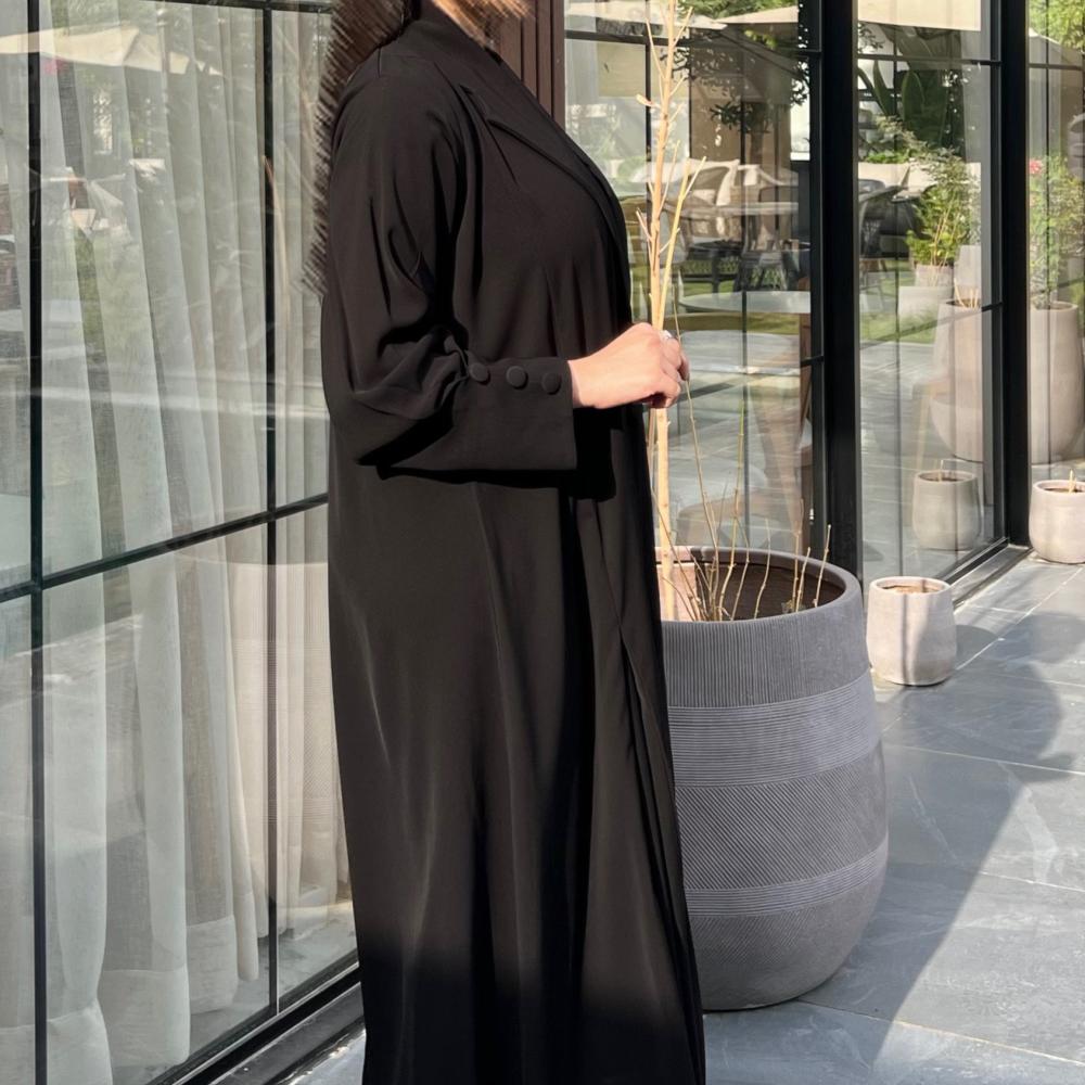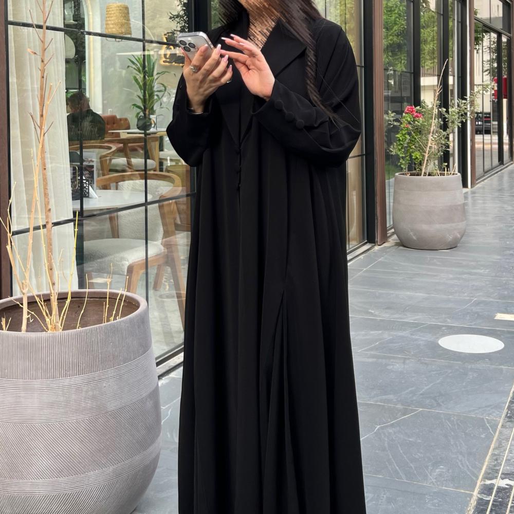 - عبايه ساده سوداء تصميم عملي يتناسب مع كل الاوقات.