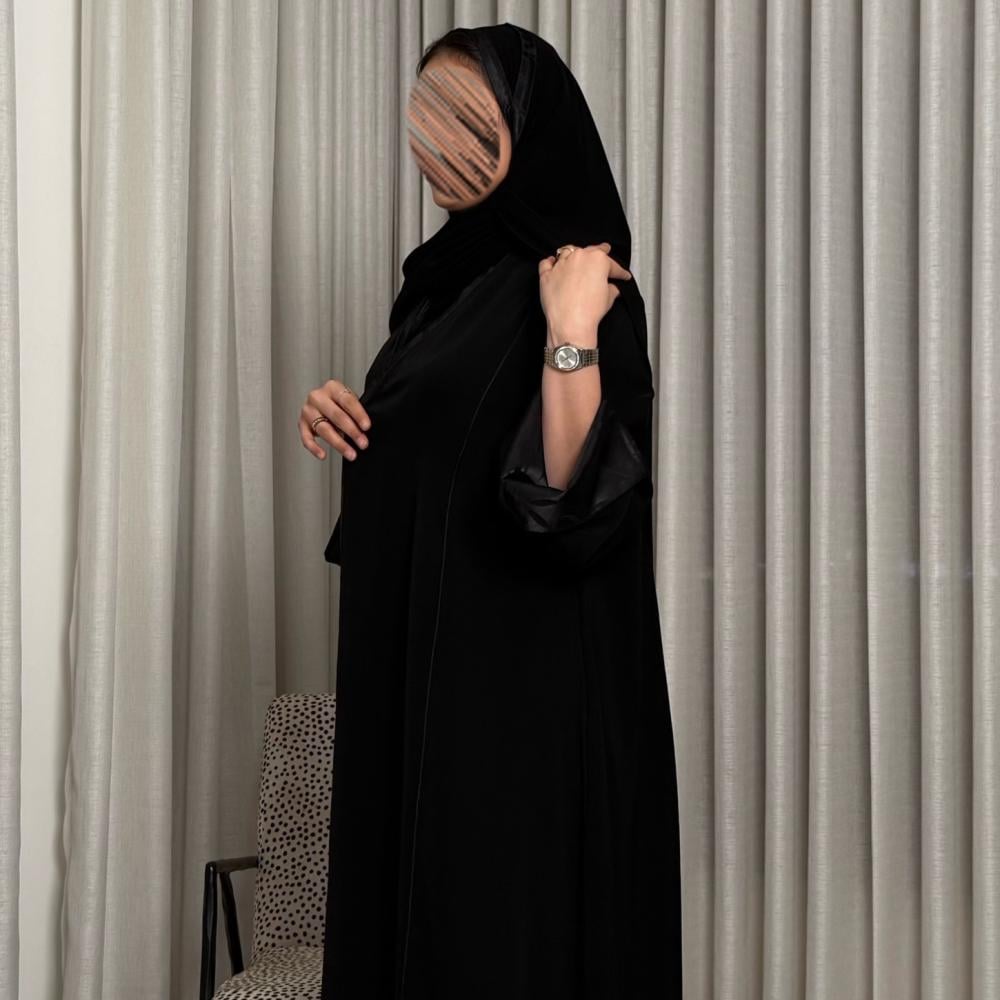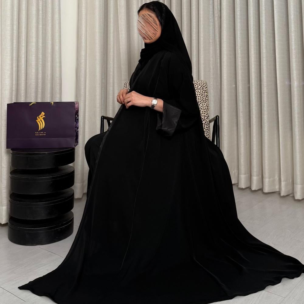 عباية سوداء واسعة تصميم أنيق، يجمع بين العصرية والراحة في كل تفصيلة.